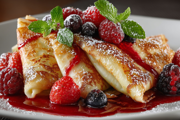 Когда я впервые попробовал креп-сюзетт в кондитерской, думал, что дома такое не повторить. Оказалось, все гениальное просто. Тонкие, почти кружевные блинчики, пропитанные малиновым сиропом с маслом, слегка карамелизованные на сковороде. Подаешь с ягодами — и кажется, что ты в уютном бистро где-то на Монмартре. А готовится всего 20 минут.